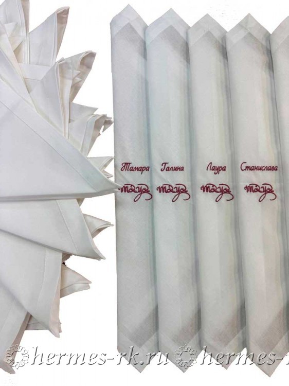 Не менее важна и вышивка на салфетках, которая может не ограничиваться простым узором или орнаментом. Здесь могут быть инициалы, имена и любая другая информация. В любом случае вышитые салфетки смотрятся намного наряднее и передают дух всего действа гостям и организаторам мероприятия.