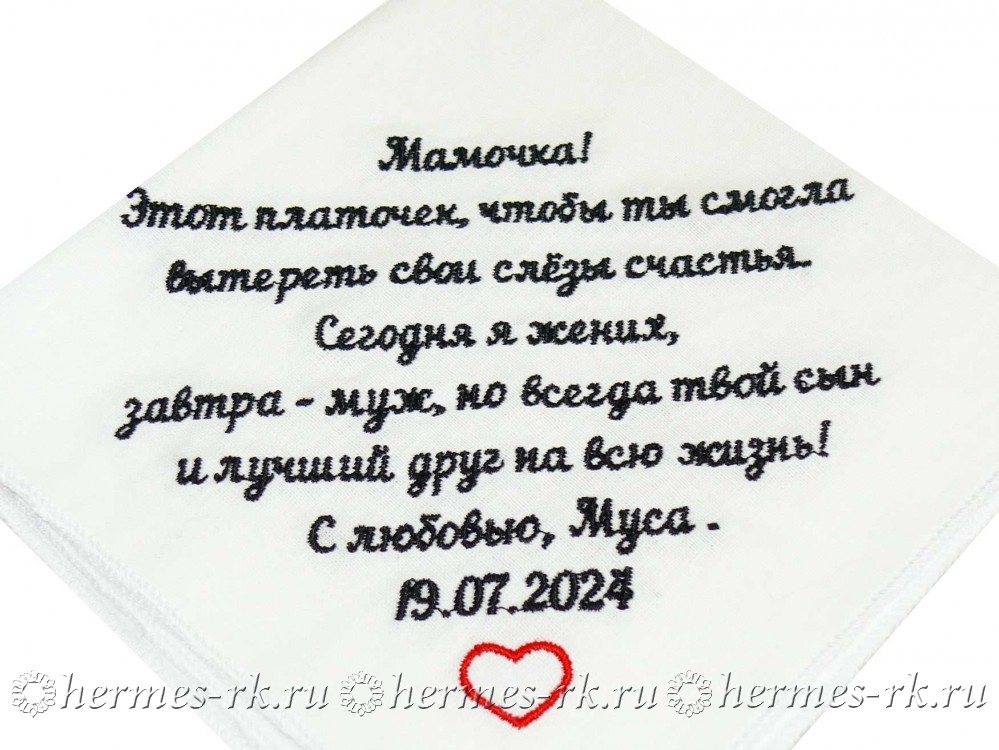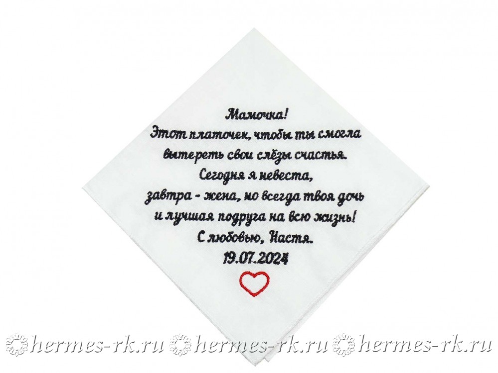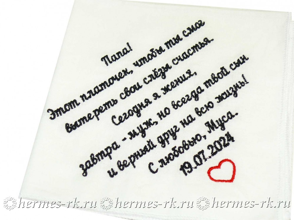 Почему вышивка на носовом платке может сделать его уникальным? Ответ прост: данный вид нанесения привнесет в вещь частичку, которую вы захотите! Она может являться частью человека, которому Вы хотите подарить такой платок, или же изображать заведение, и сразу же после нанесения логотипа или рисунка платок преображается и становится именно таким, каким вы его видите!